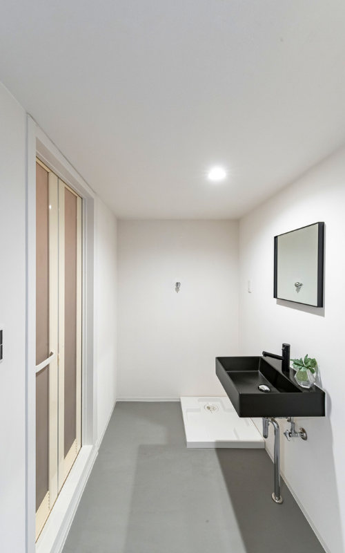 洗面脱衣室、浴室、ファミリークローゼットは、動線をコンパクトにまとめ、 忙しい朝でも家族がスムーズに使えるように配置しました。