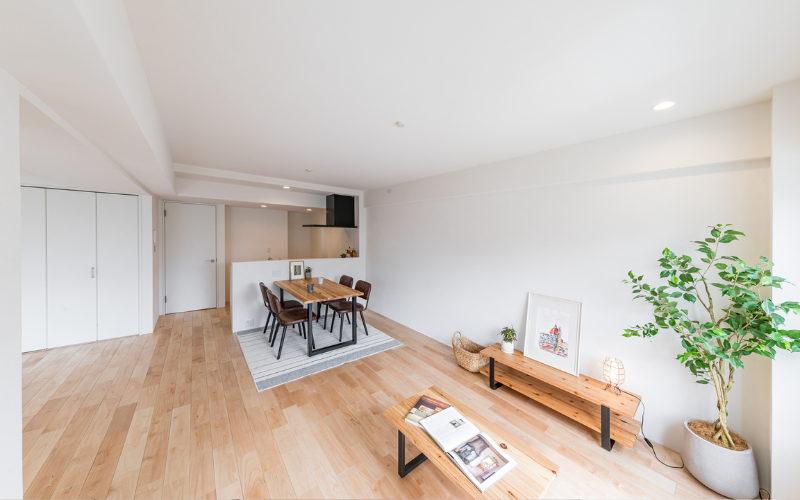 ひとつながりの LDK に生まれ変わった空間は、動線と心地よさが丁寧に整えられ、家族がゆったり過ごせる場所に生まれ変わりました。
