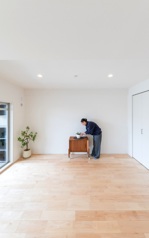 自然素材のやさしい手触りに包まれたこの家では、 無垢の床や漆喰の壁、ていねいに選んだ素材たちとともに、 これからの暮らしがゆっくりと育まれていきます。
