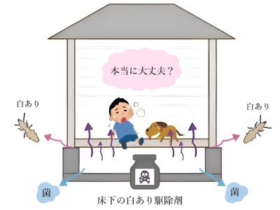温暖多湿な日本で、木造住宅の天敵となっているのがシロアリや腐食菌。住宅性能の向上による気密性が仇となり、殺虫効果の高い農薬系の薬剤は、人の健康まで蝕み始めました。そこでPlainHomeは、家族の健康を1番に考え、安心して暮らせる防蟻防腐剤を探し、レーベンキュアと巡り合いました。