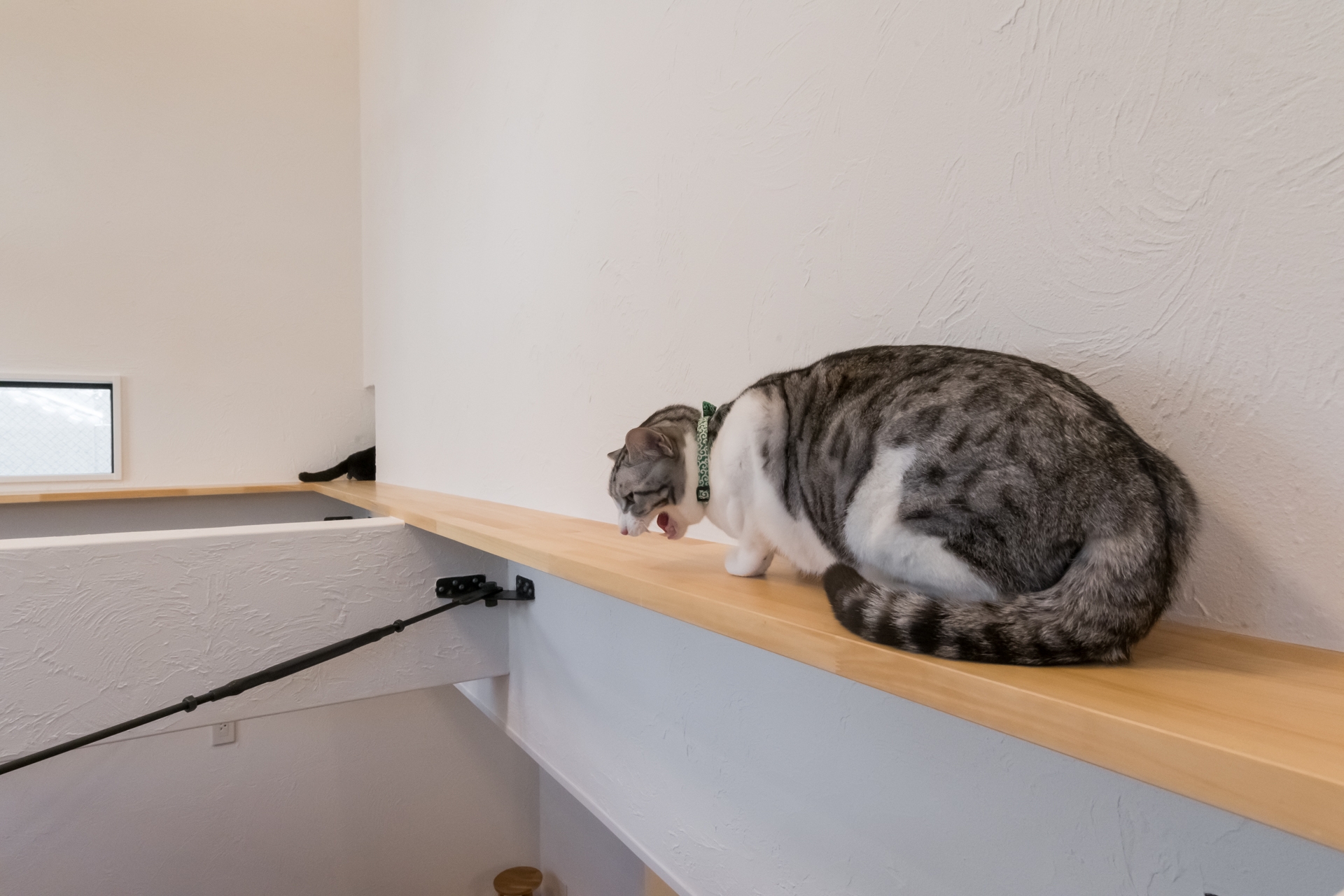階段を上がると一面に広がるキャットウォークが。ねこ様のくつろぐ姿に毎日癒されます。