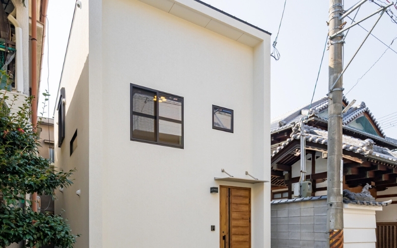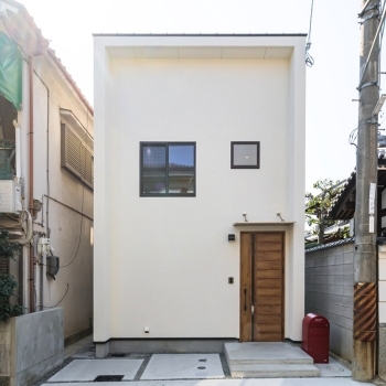 白の塗壁がかわいい2階建ての家。玄関を入るとすぐリビングがお出迎え。リビング上の吹き抜けにはキャットウォークを設置。一息つくときもいつでも、上を見るととねこ様たちの癒しの姿を見ることができます。カウンターキッチンで夫婦2人で過ごす時間も確保しながら、4匹のねこ様たちの暮らしやすさを第一に考えられたねこ様も喜ぶお家です。